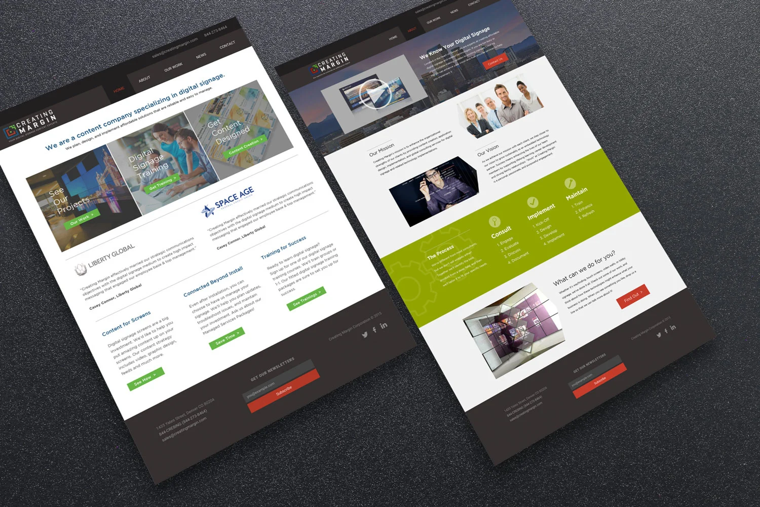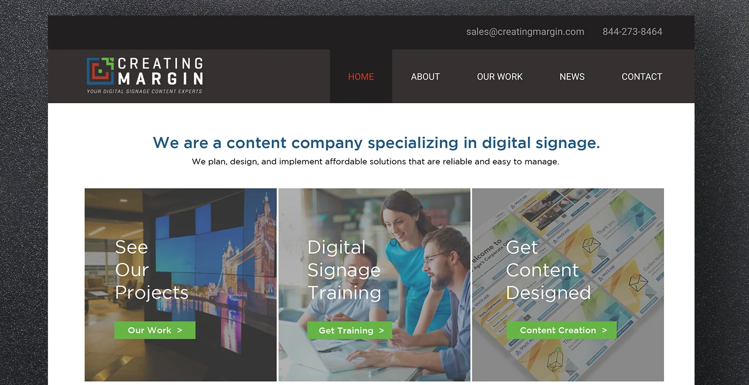 Creating Margin is a Denver based digital signage company that specialized in making content for signage. These two web